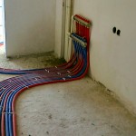 – Kat içlerinde döşeme hızı yüksektir. En yaygın yöntem olarak, her katta ana kolondan her bir odaya ayrı grup borular zemine serilir. Borular kangal halinde temin edildiğinden nakliyesi kolaydır.