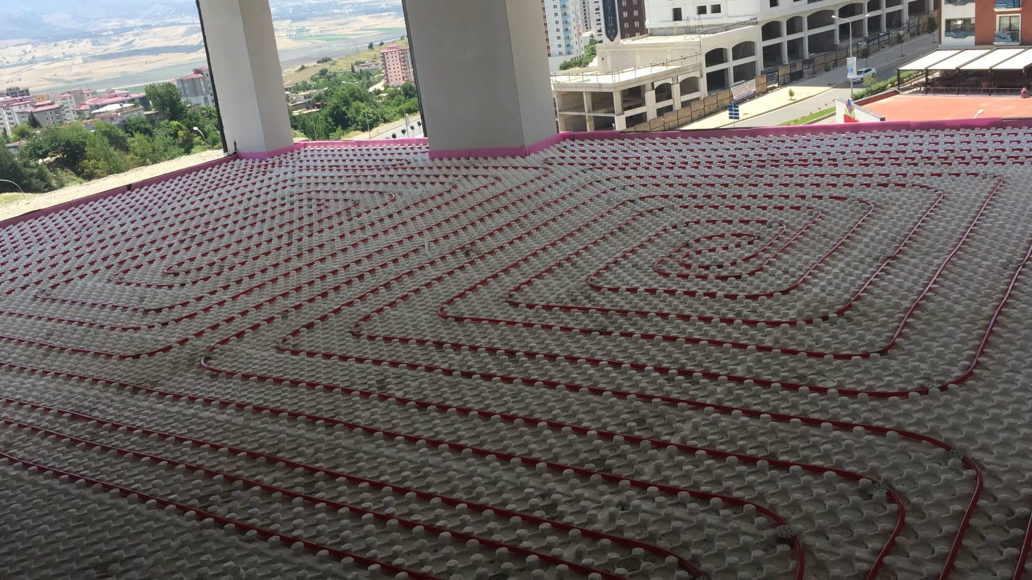 – Kat içlerinde döşeme hızı yüksektir. En yaygın yöntem olarak, her katta ana kolondan her bir odaya ayrı grup borular zemine serilir. Borular kangal halinde temin edildiğinden nakliyesi kolaydır.